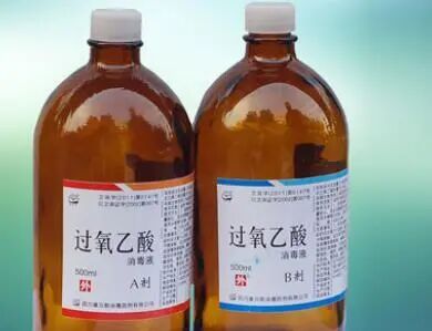 过氧乙酸属高效过氧化物类消毒剂,过氧乙酸的气体和溶液都具有很强的杀菌能力。过氧乙酸水解产物为醋酸和过氧化氢。因此,过氧乙酸为混合水溶液,除含主要成分过氧乙酸,另含过氧化氢、醋酸、硫酸等。高浓度药液具有强腐蚀性、刺激性,也属于危险品。